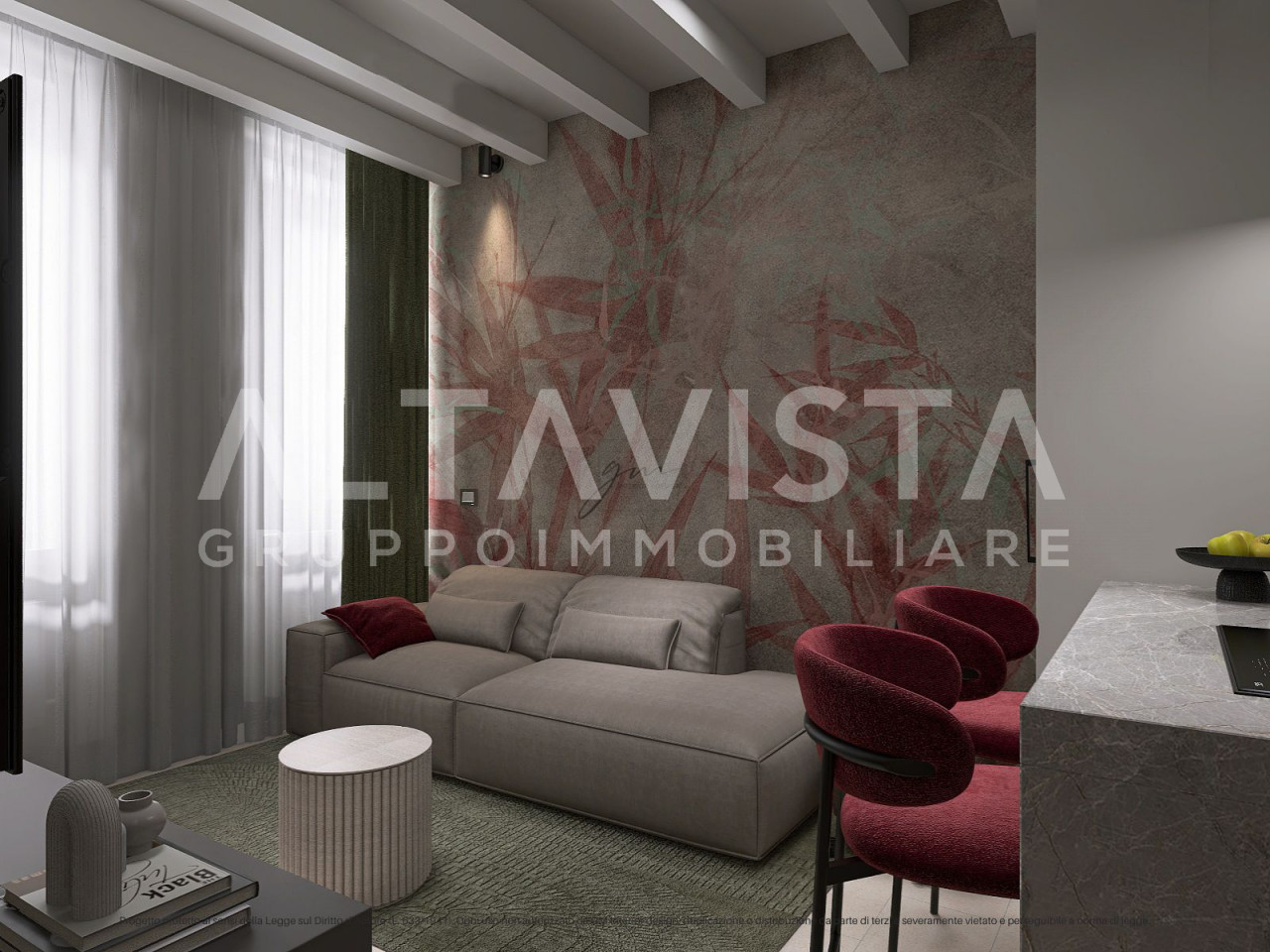 Nel cuore del centro storico di Brescia, proponiamo in vendita elegante bilocale completamente ristrutturato, situato al primo piano di un palazzo servito da ascensore.