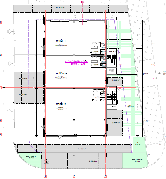 La struttura rispetta le ultime normative in materia antisismica e di risparmio energetico; l'altezza media è di 4,10 e la metratura di 315m² con area esterna privata di 340m².