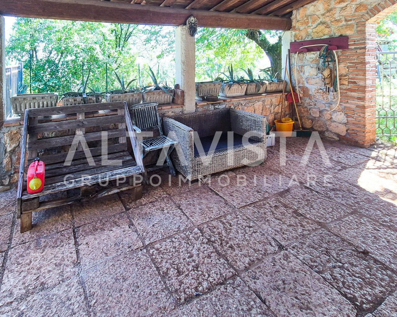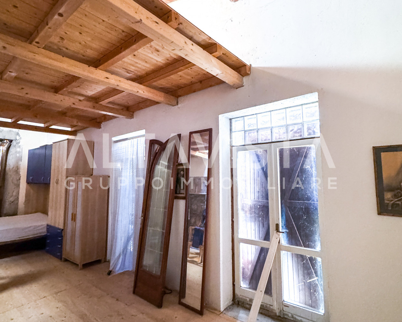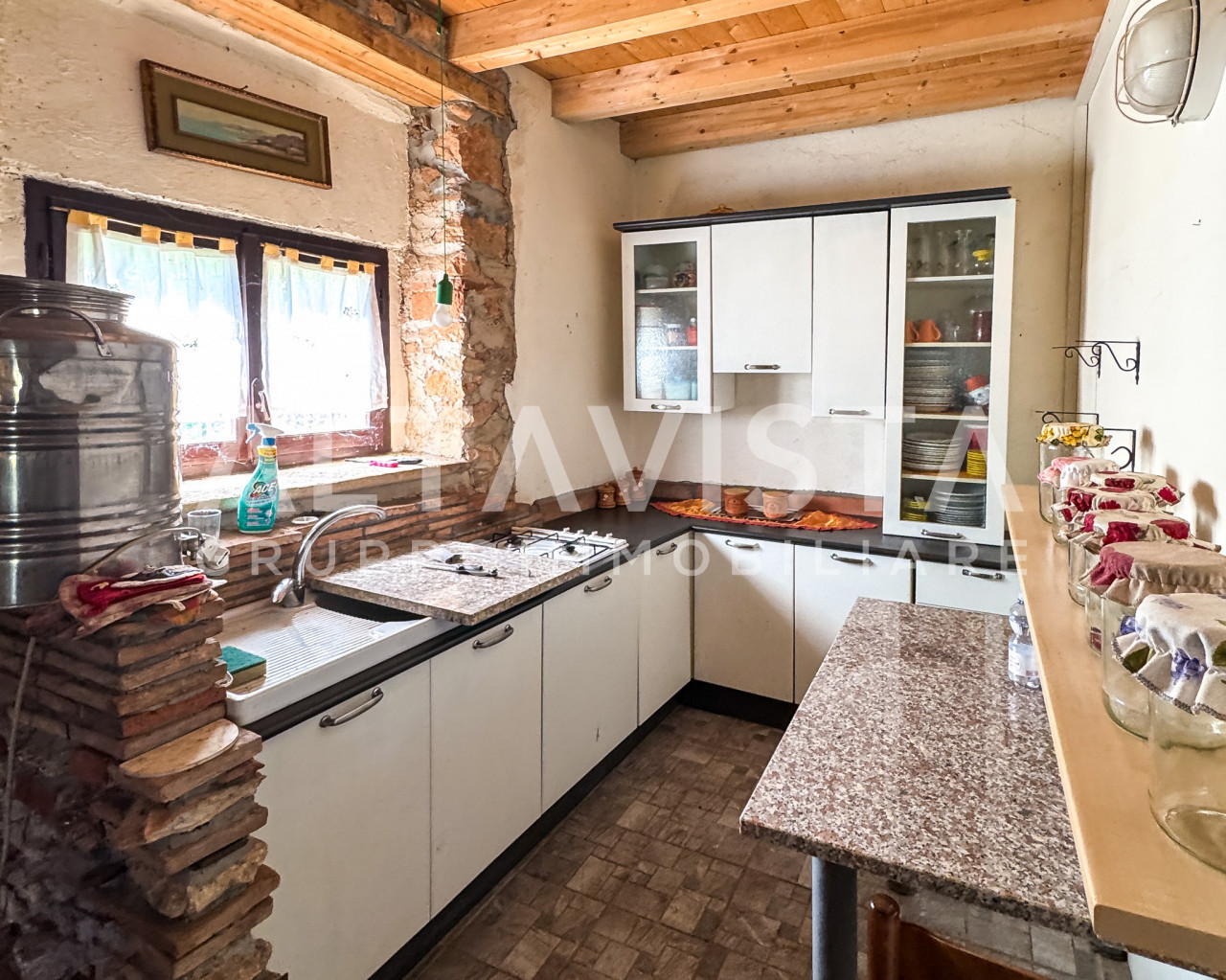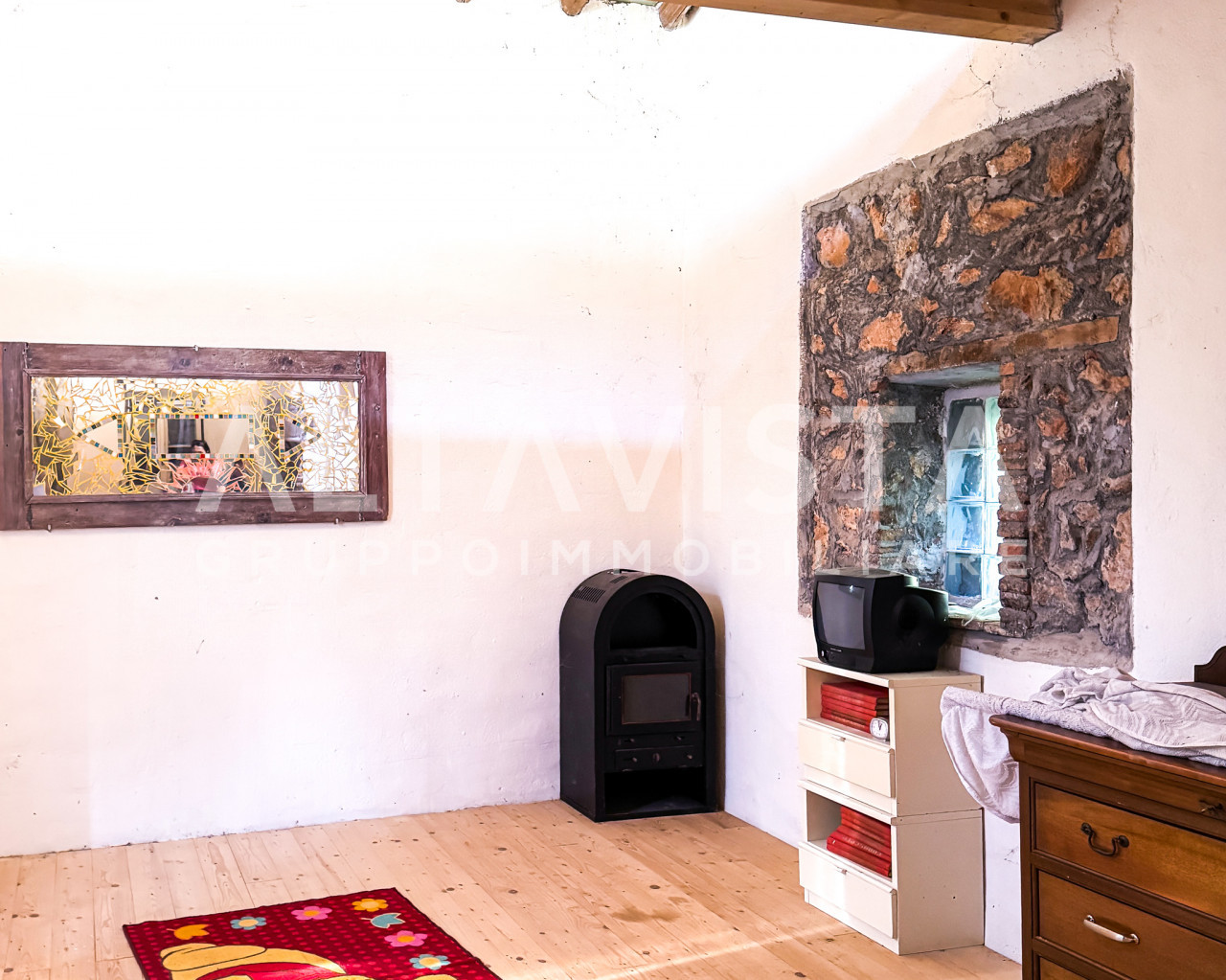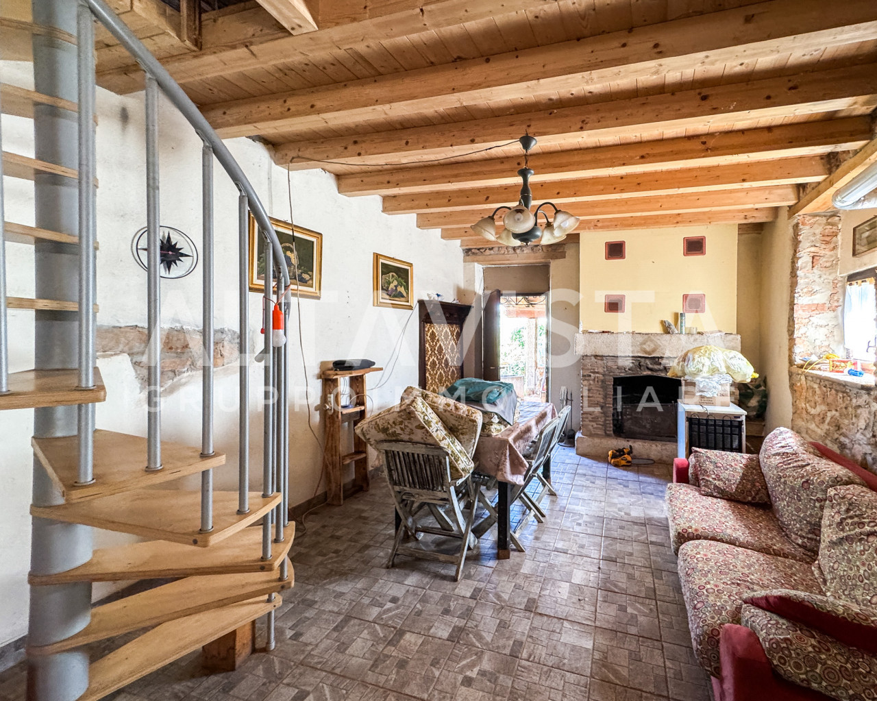 La proprietà, parzialmente ristrutturata e dotata di impianto fotovoltaico, si distingue per il suo autentico carattere rustico e l’atmosfera senza tempo. Un portico coperto accoglie all’ingresso, conducendo al piano terra dedicato alla zona living, mentre al piano superiore si sviluppa la zona notte, arricchita da un suggestivo soppalco mansardato.