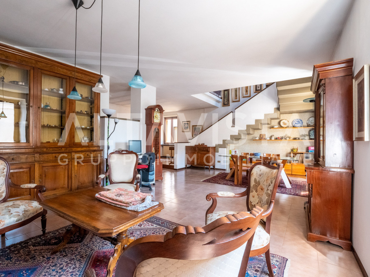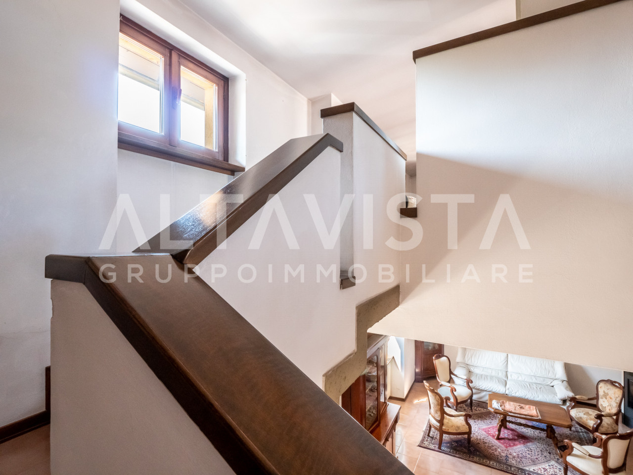 L'appartamento si sviluppa tra il primo e il secondo piano, con accesso semi-indipendente al piano terra, dove si trovano anche una spaziosa autorimessa, una taverna ed un locale caldaia/lavanderia. Salendo al primo piano, si viene accolti da un ampio e luminoso soggiorno che conduce a una comoda zona pranzo e ad una spaziosa zona living, impreziosita da una scala a vista in muratura. La cucina separata e abitabile si affaccia su una loggia, ideale per pranzi all'aperto o momenti di relax. Un disimpegno separa la zona giorno dalla zona notte, dove si trovano tre camere da letto, la matrimoniale con il bagno dedicato e altre due comode camere, per finire un secondo bagno sempre finestrato e un ripostiglio fruibile.