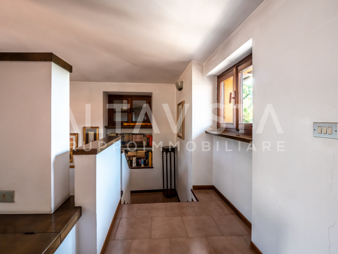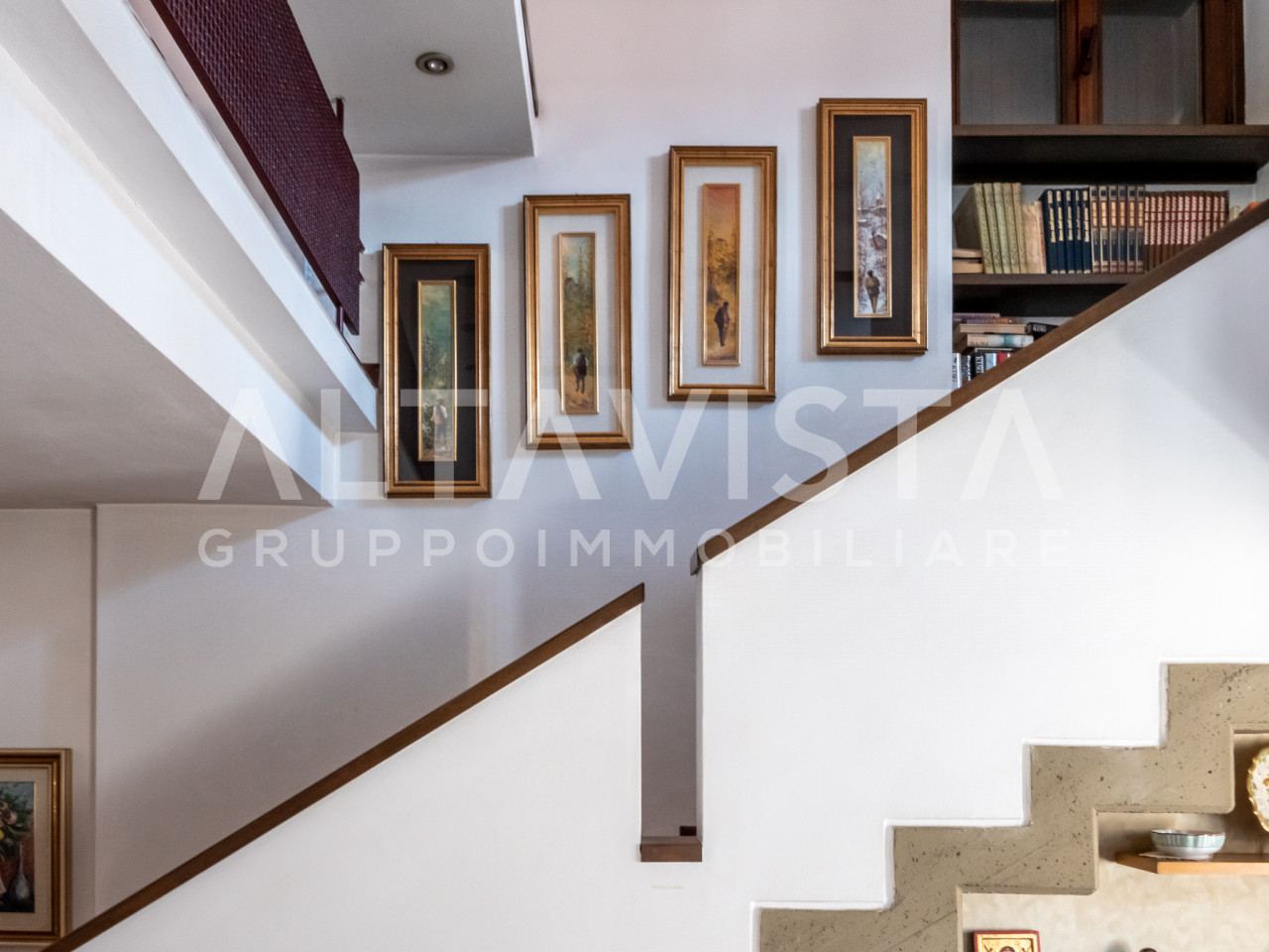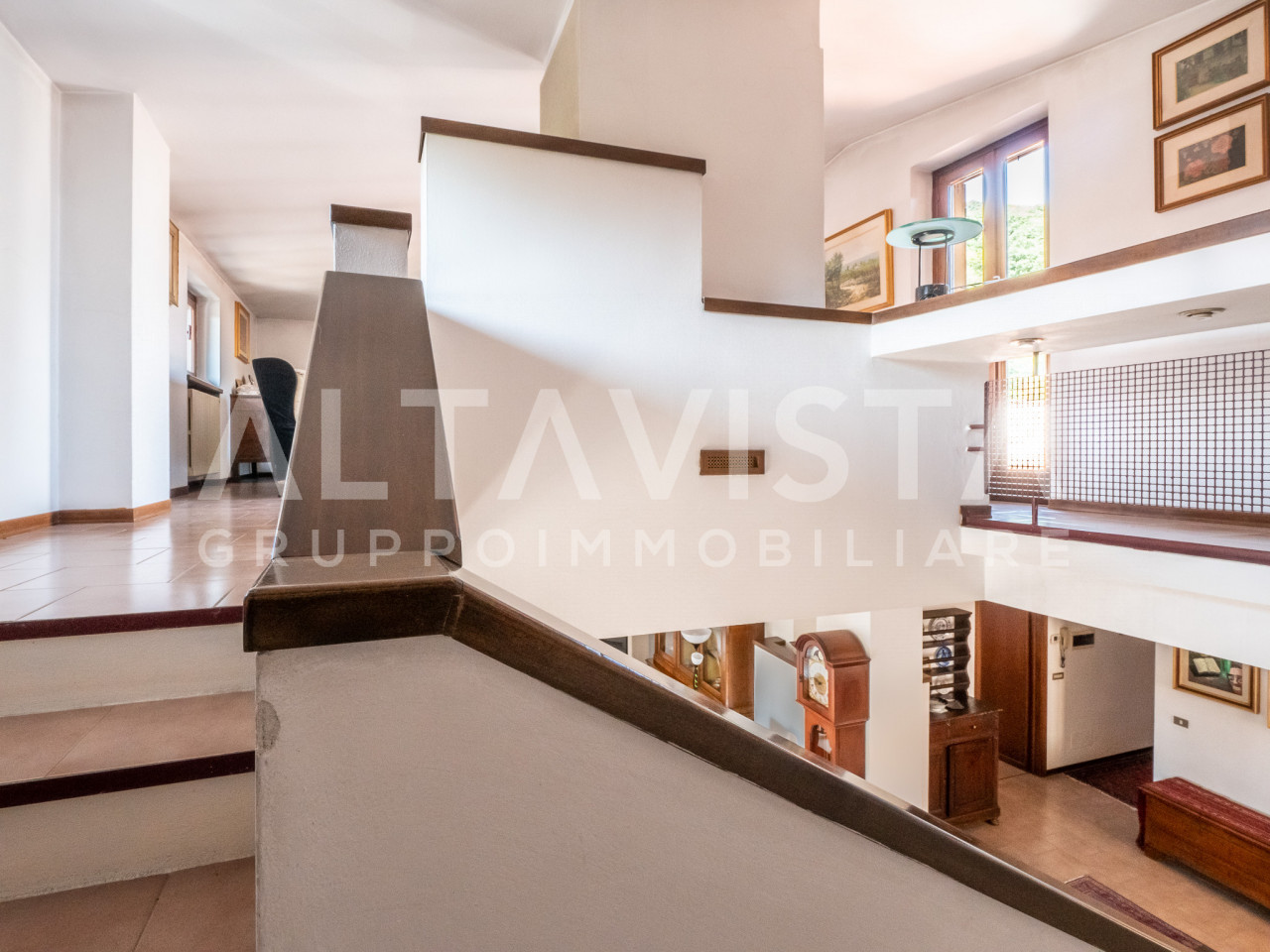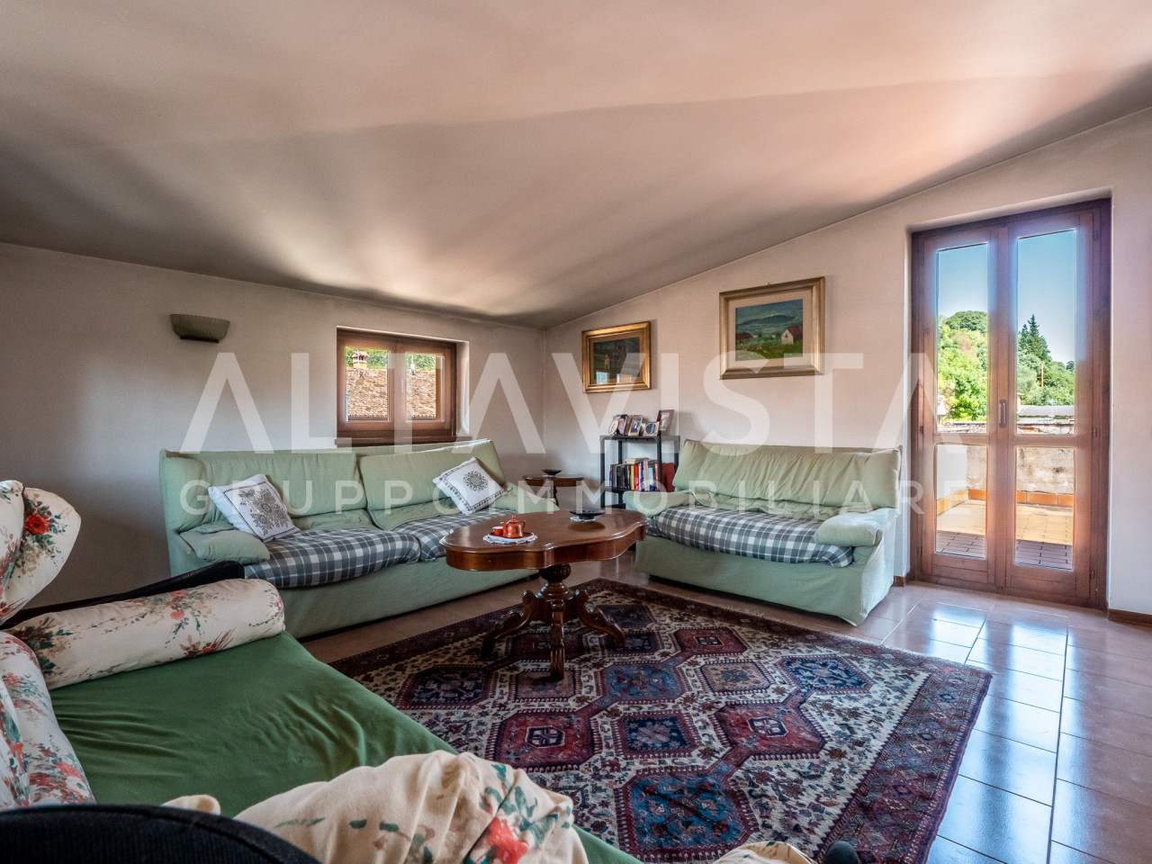 Al secondo livello, collegato da un'importante scala interna, si apre un secondo soggiorno che porta al grande terrazzo, un vero e proprio spazio all'aperto con vista panoramica sul verde circostante.