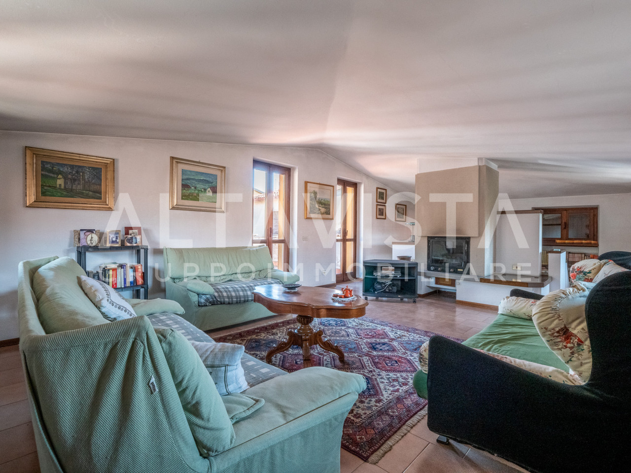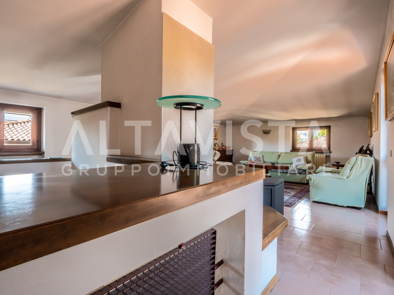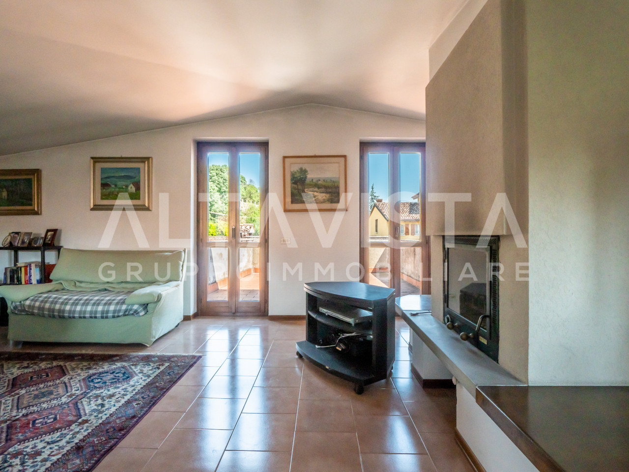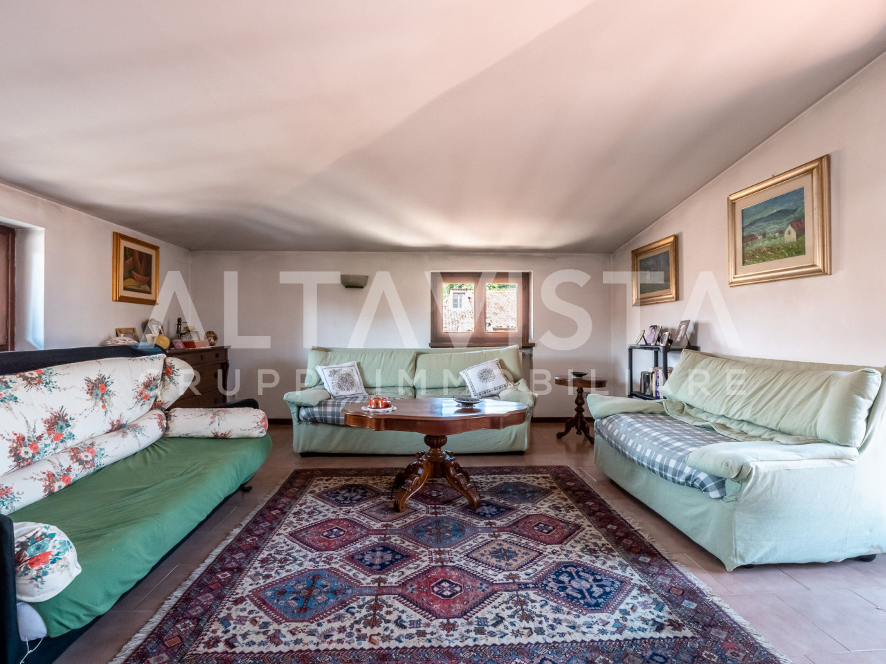Al secondo livello, collegato da un'importante scala interna, si apre un secondo soggiorno che porta al grande terrazzo, un vero e proprio spazio all'aperto con vista panoramica sul verde circostante.