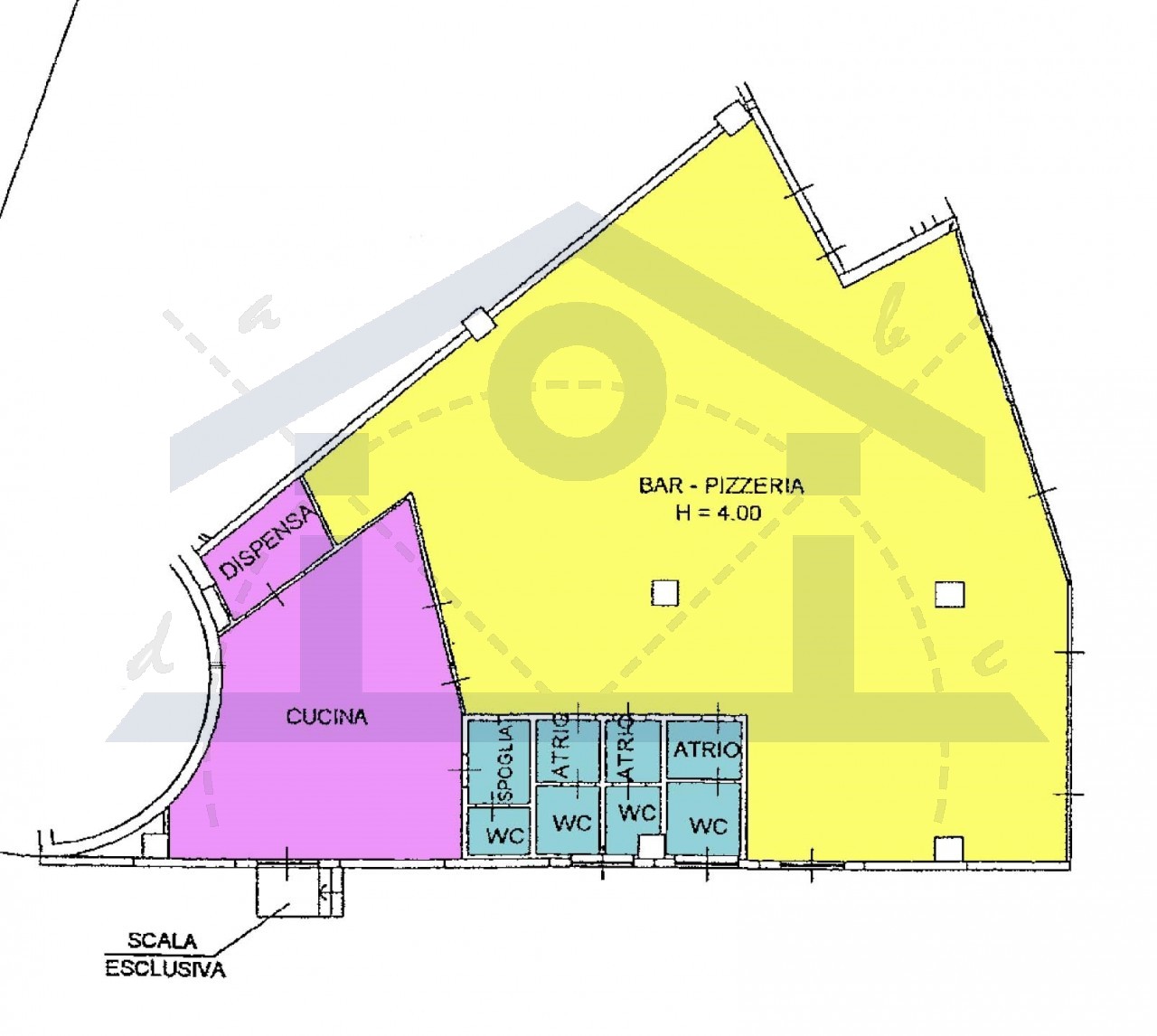 Situato nella zona industriale, nei dintorni di grandi aziende e facilmente raggiungibile dalla Statale, si trova Locale commerciale adibito a ristorante-pizzeria di mq 283 circa, grandi vetrate che danno sulla strada principale, composto da sala bar-ristorante, servizi clienti, cucina, dispensa, spogliatoi e servizi per il personale.