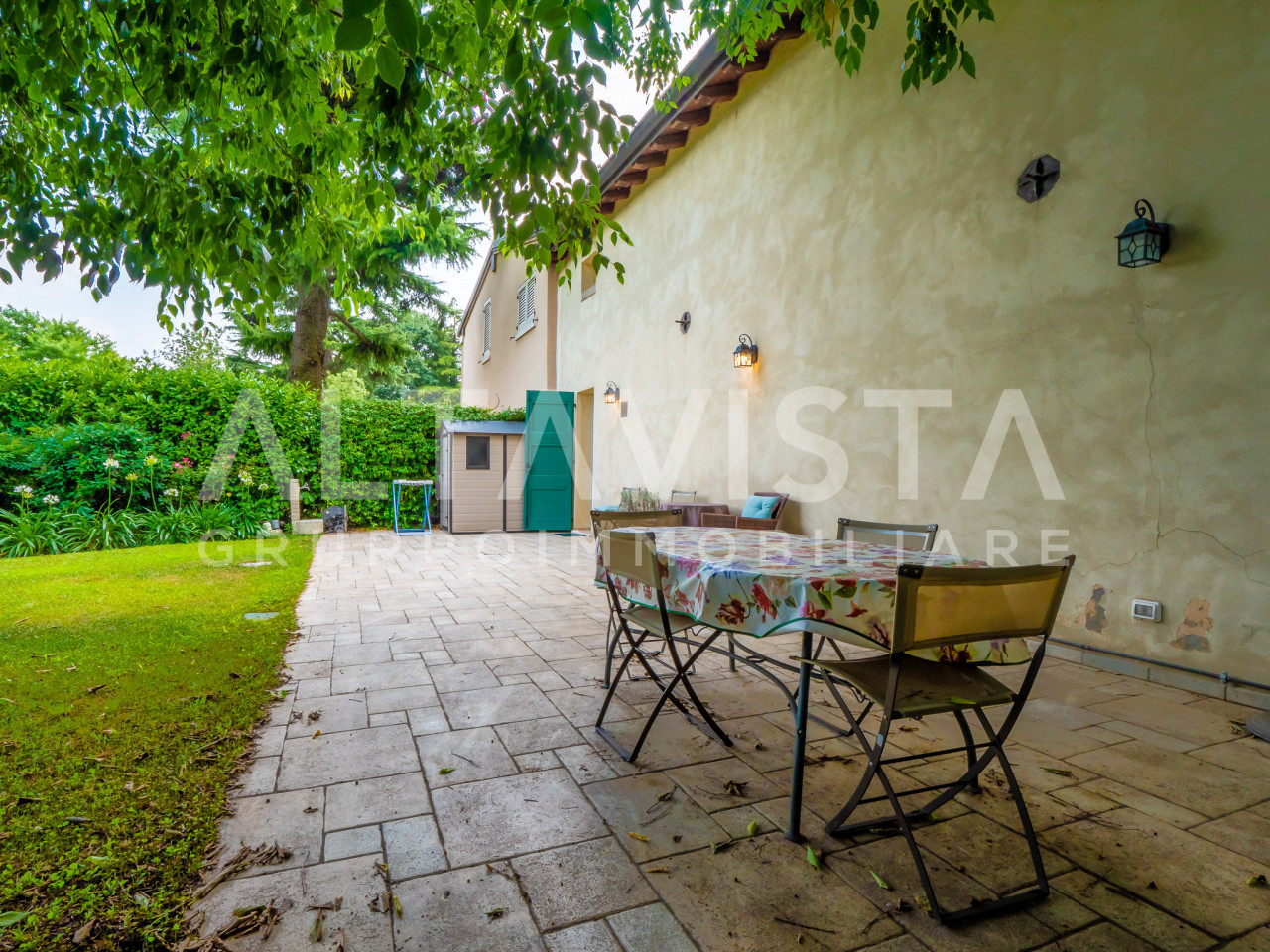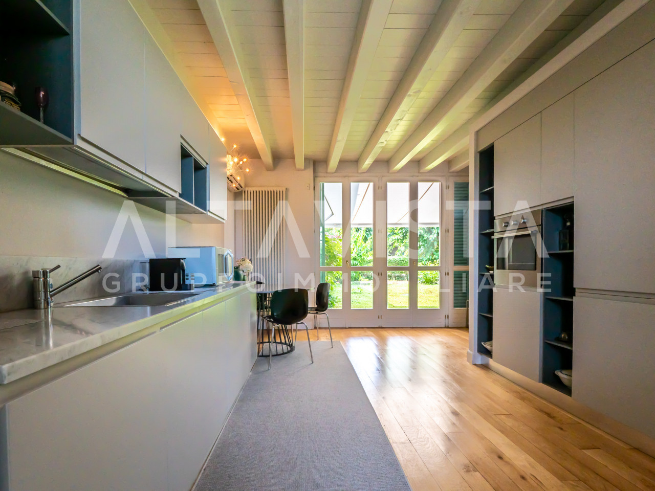 L'abitazione, con ingresso indipendente, si sviluppa su due livelli. Al piano terra, un comodo ingresso accoglie gli ospiti e conduce a un ampio soggiorno, dove la zona living e la zona pranzo sono perfettamente organizzate per offrire comfort e convivialità. La cucina separata e abitabile, realizzata su misura, si affaccia sul magnifico giardino privato, un'oasi di pace e tranquillità ideale per momenti di relax all'aria aperta.