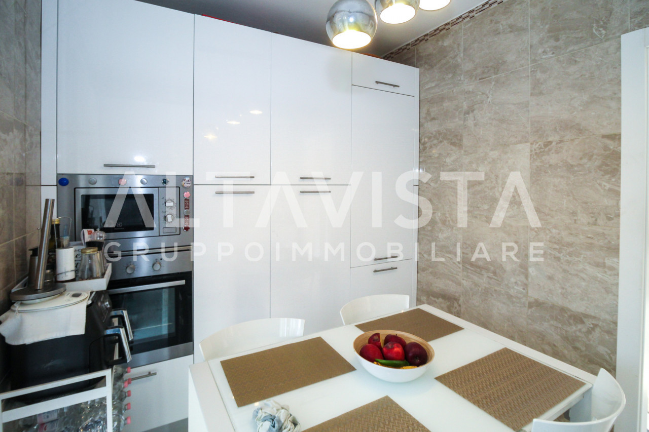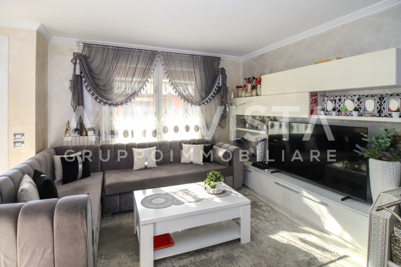 La soluzione si apre su una luminosa zona giorno con cucina separata e un ampio terrazzo abitabile.