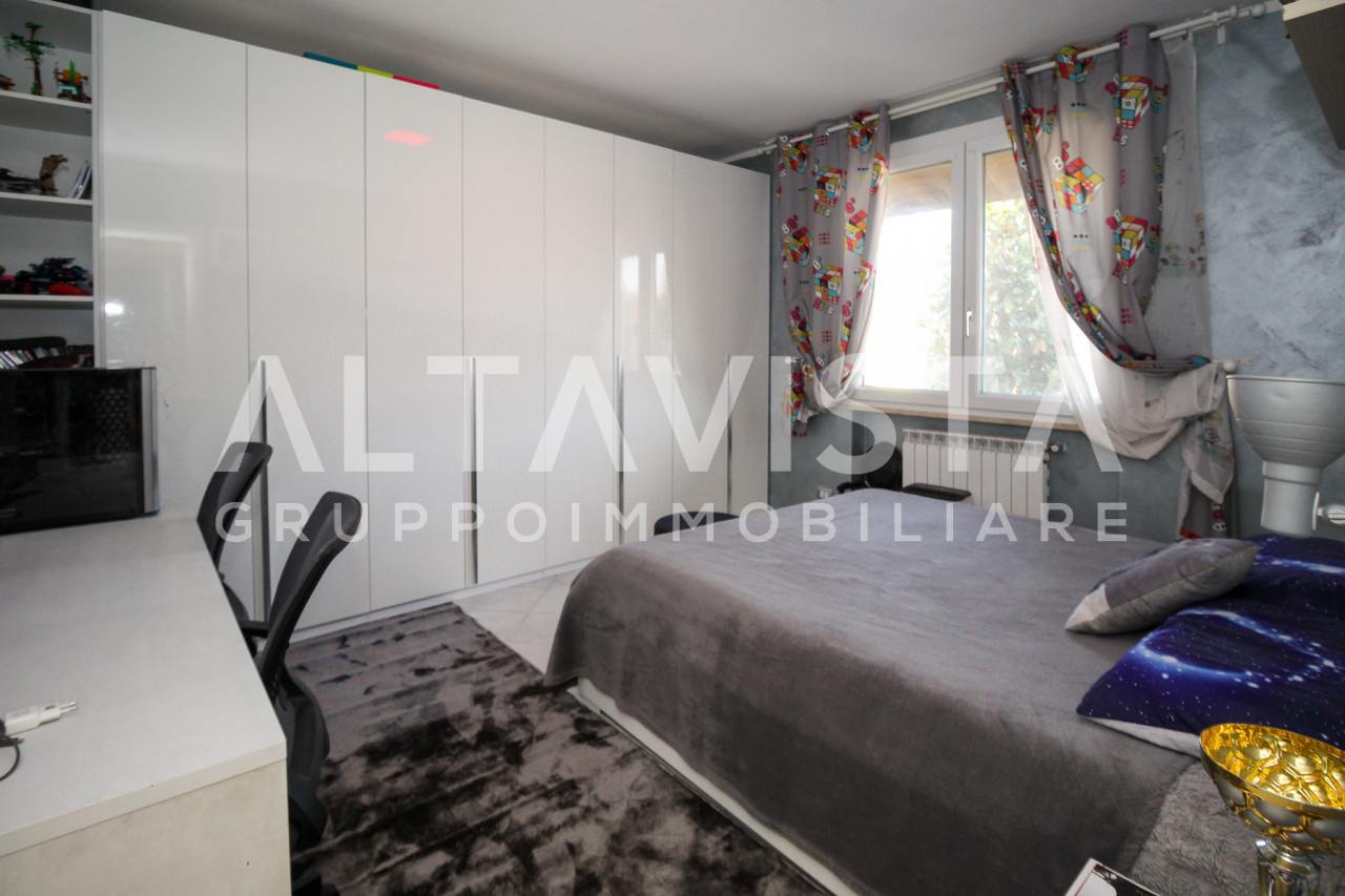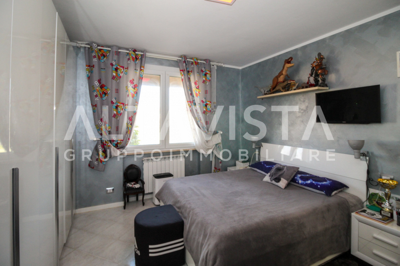 La zona notte è composta da due ampie camere da letto, un pratico bagno con box doccia e un balcone.