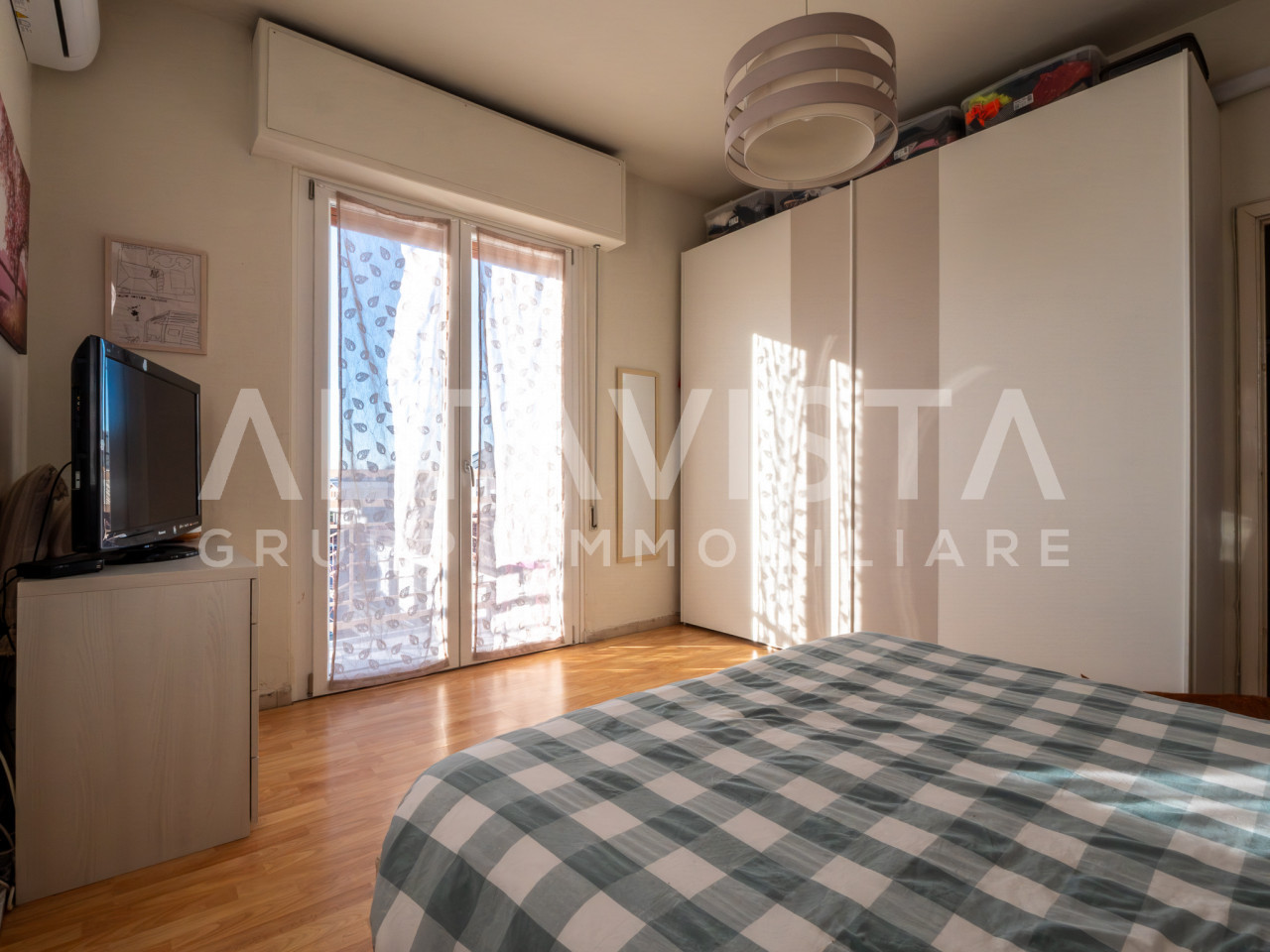 L’appartamento è composto da un comodo ingresso, una zona soggiorno con cucina che gode dell’affaccio sul verde, e un disimpegno che porta alla zona notte. Qui si trovano una camera matrimoniale, una seconda camera matrimoniale con balcone e il bagno finestrato.