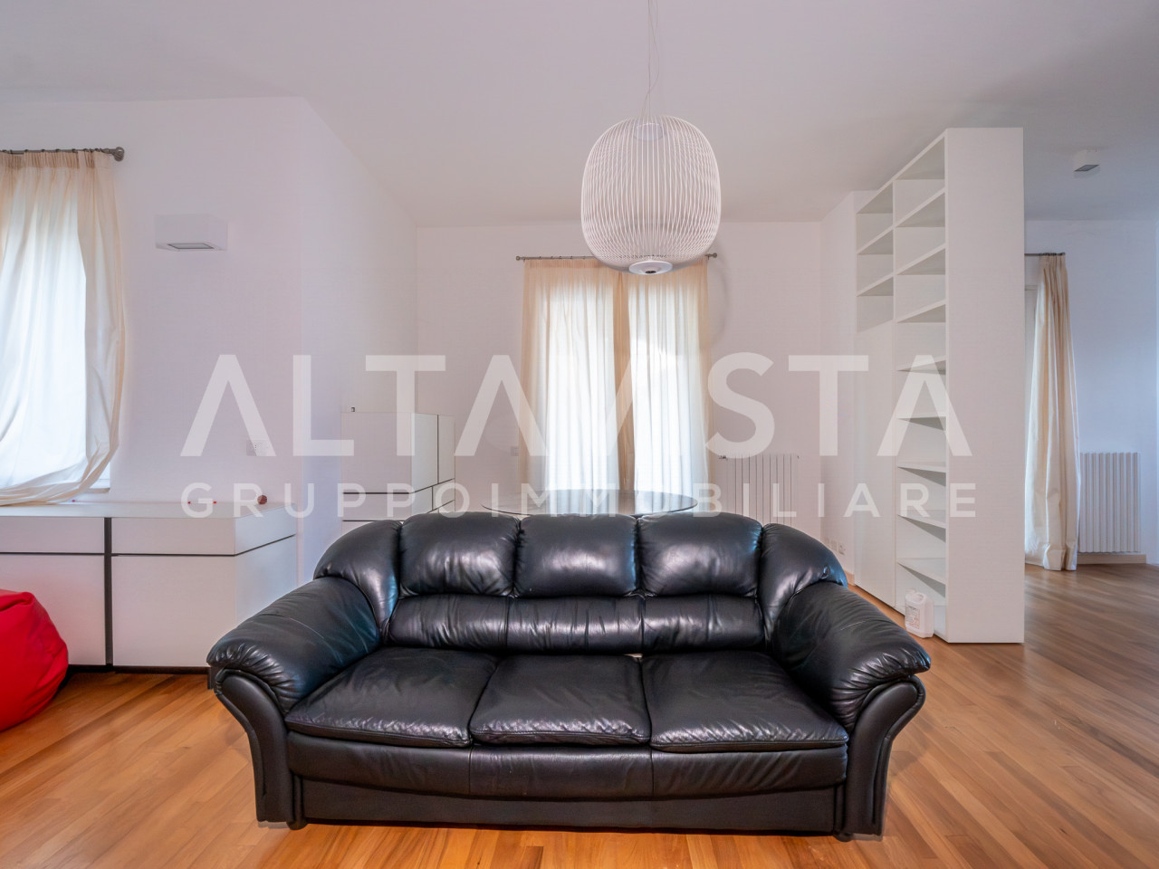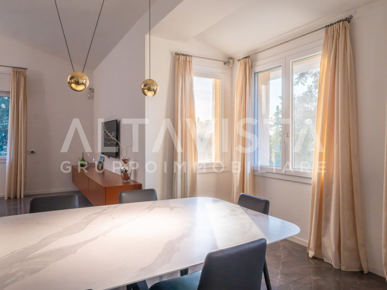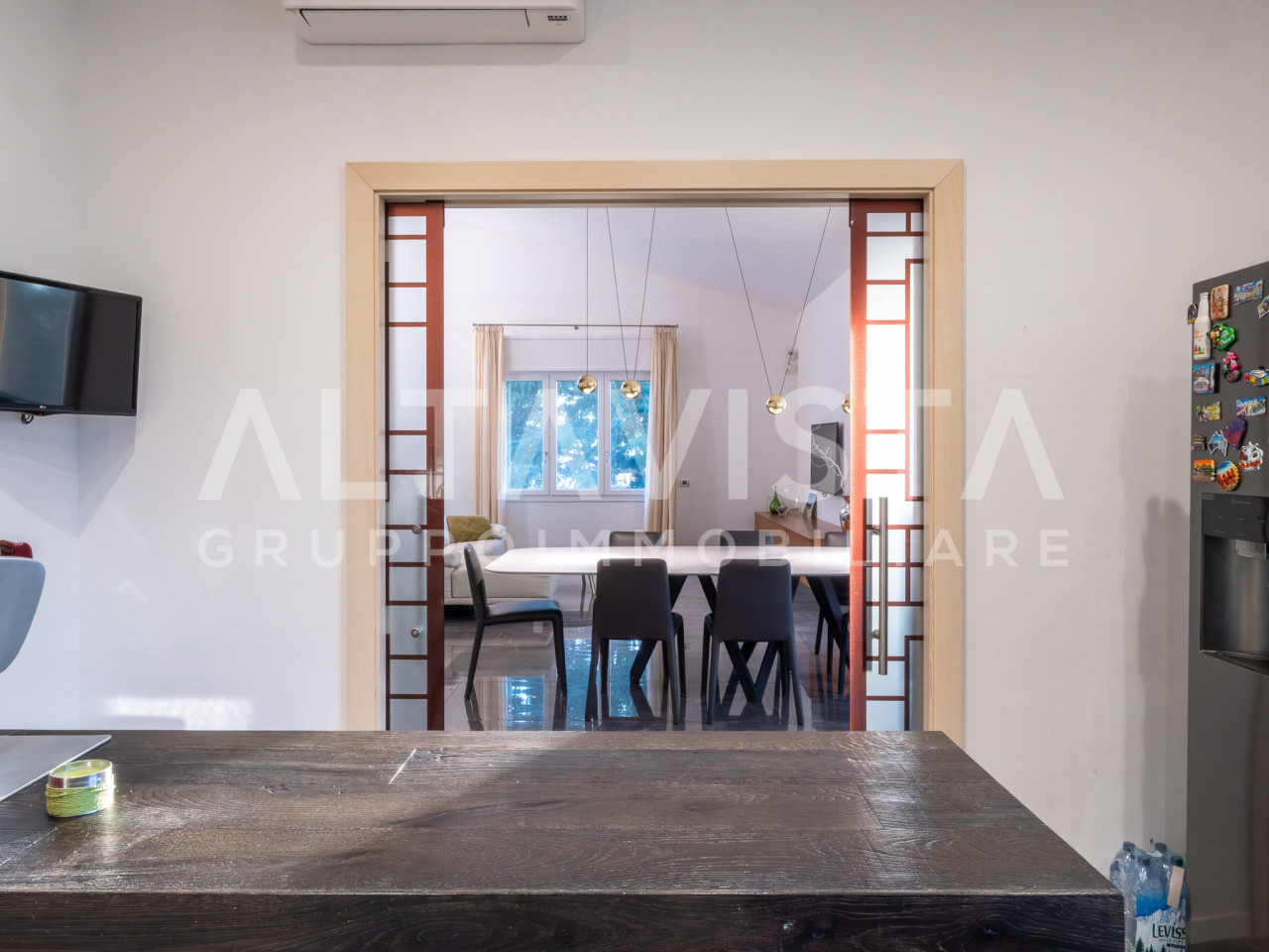 Un elegante ingresso ad arco introduce all’ampio soggiorno, articolato in due ambienti distinti: una zona di accoglienza e un raffinato living con adiacente area pranzo, in diretto collegamento con la cucina separata, dotata di balcone panoramico.