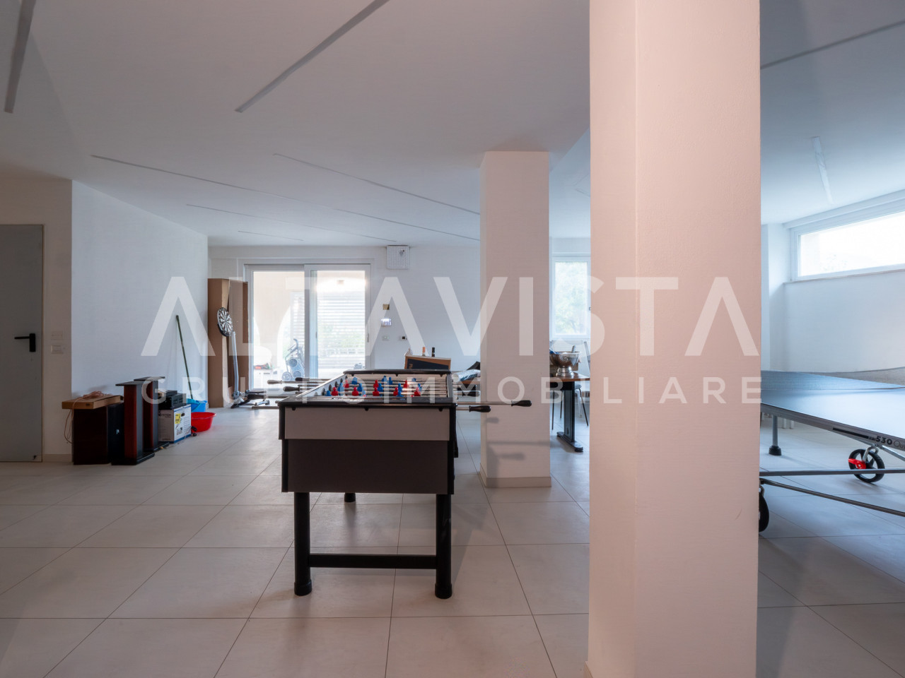 Il piano seminterrato è dedicato al tempo libero e al benessere, con una rinomata cantina vini, una sala karaoke completamente insonorizzata utilizzabile anche come taverna e un ampio bagno con doccia. Completa il livello una spaziosa autorimessa, il locale lavanderia e la centrale termica.