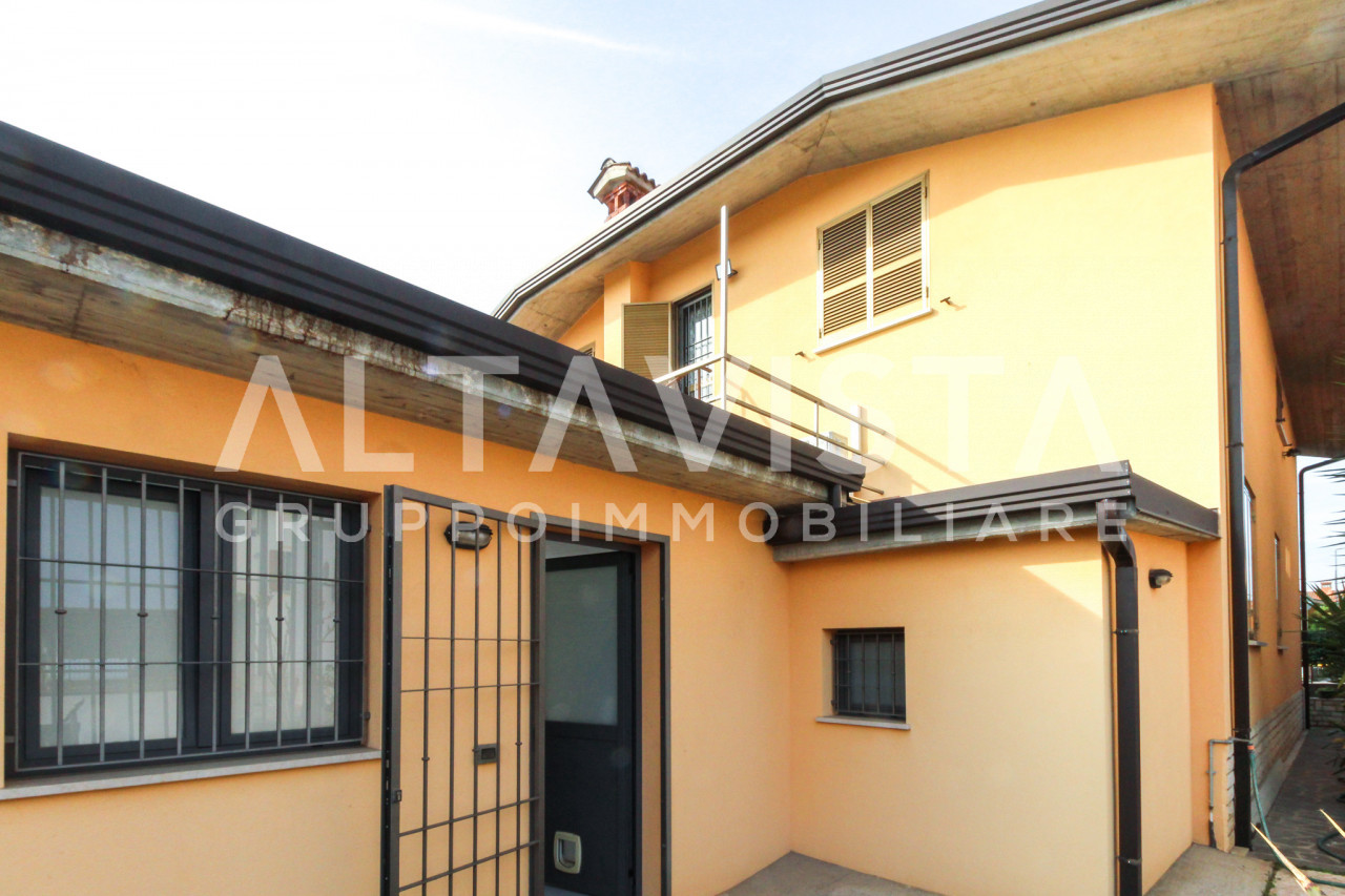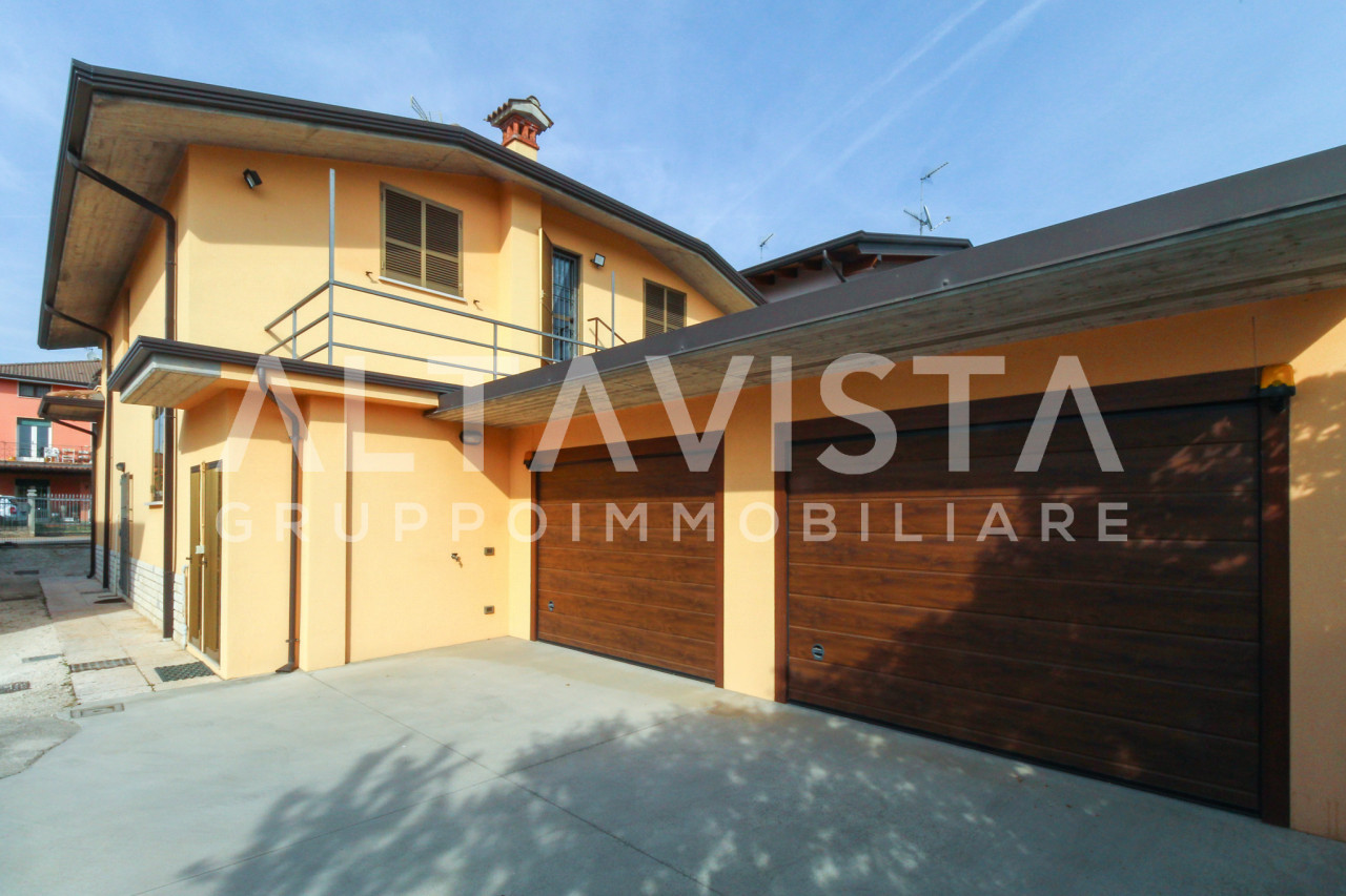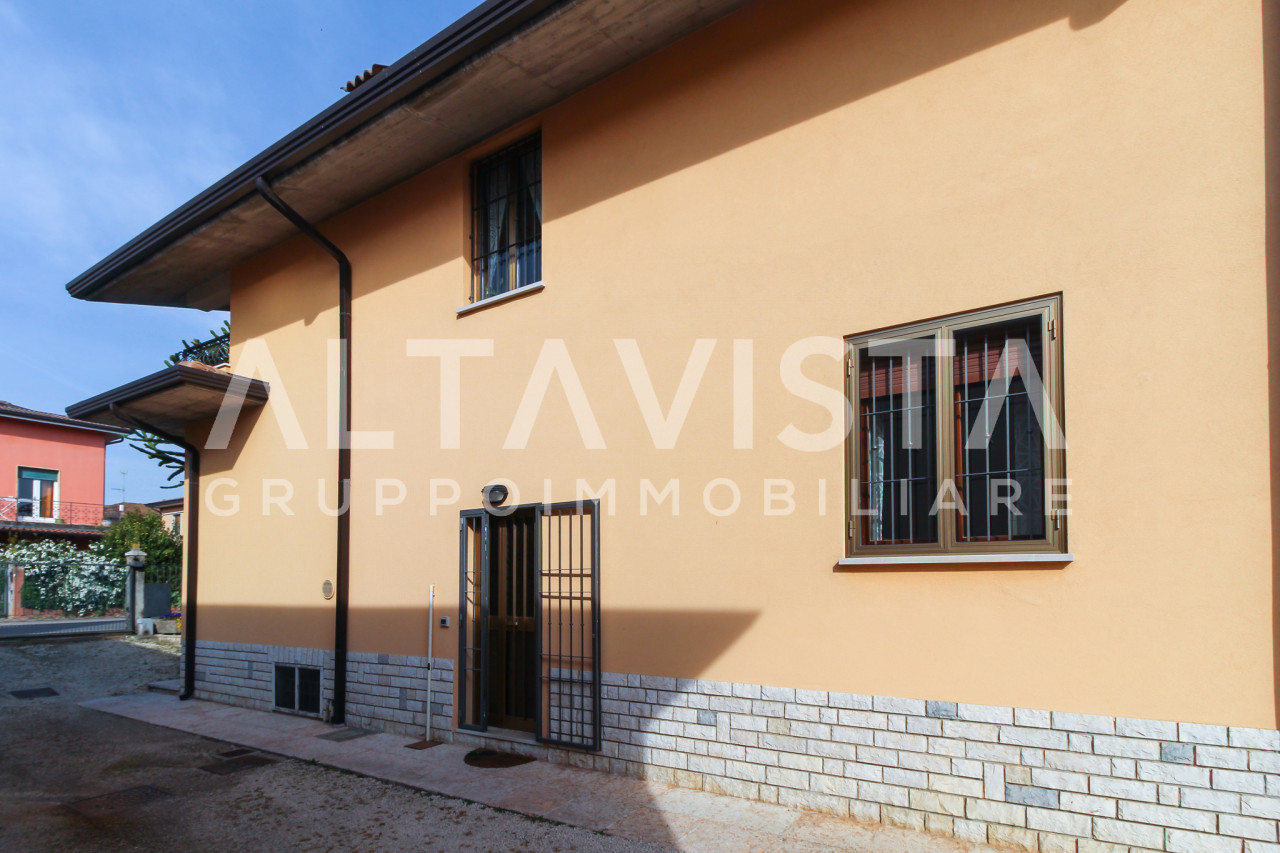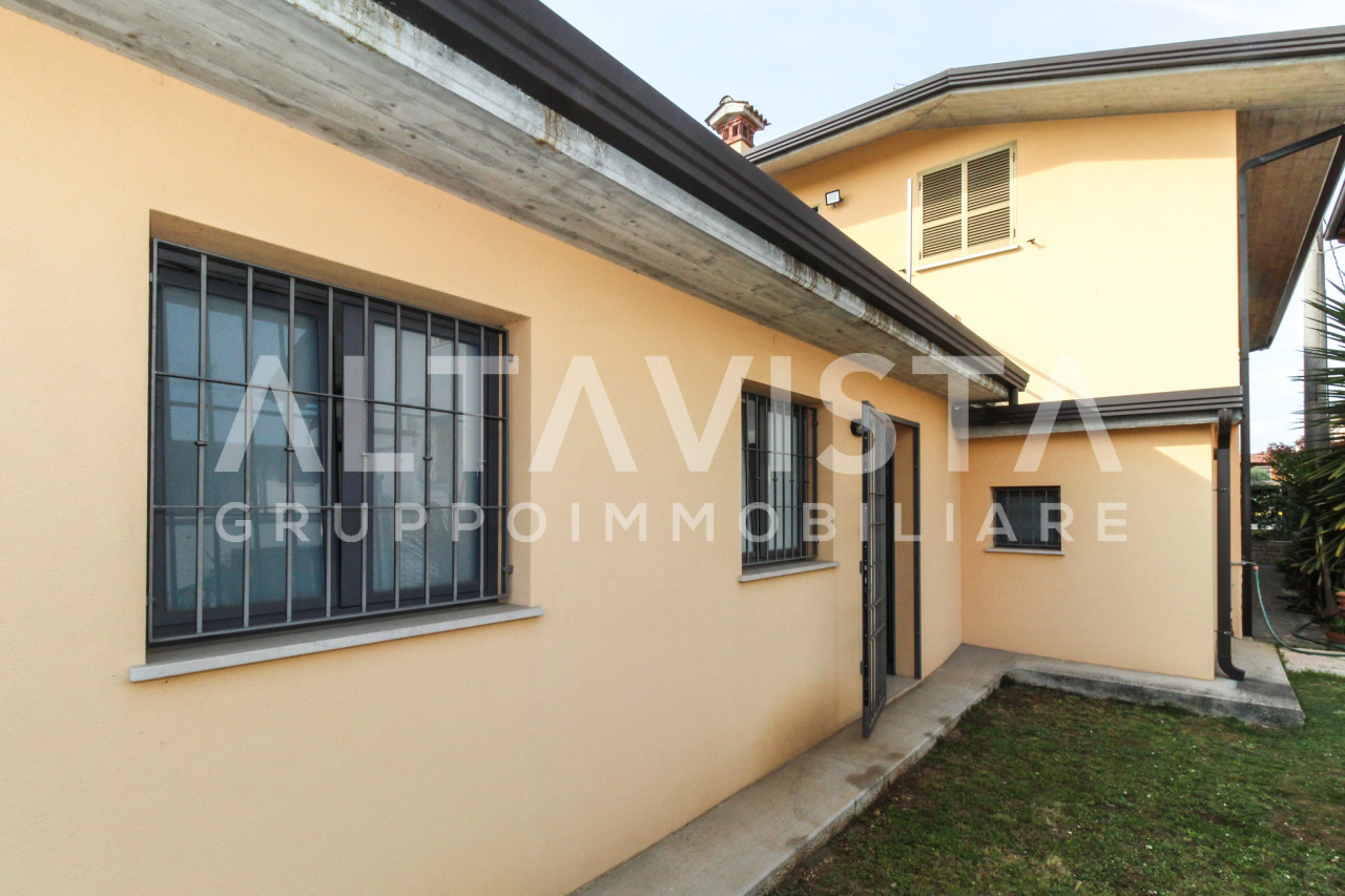 ALTAVISTA Gruppo Immobiliare propone in vendita Esclusiva a Bedizzole, in zona centrale, una villa singola disposta su piano terra, primo piano e una porzione interrata, con ingresso indipendente tramite cancellino pedonale e cancello carraio.