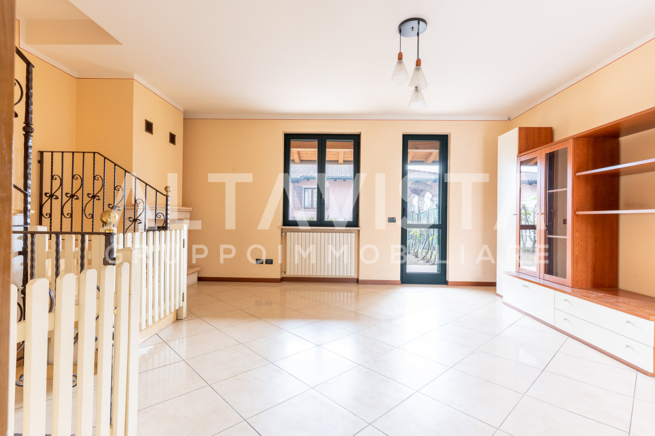 ALTAVISTA Gruppo Immobiliare propone in vendita, nella tranquilla zona di Carzago, una villetta a schiera centrale inserita in un contesto riservato di sole tre unità abitative.