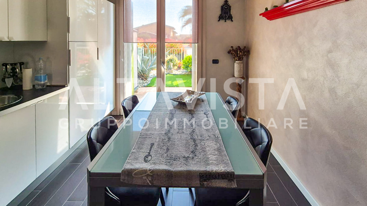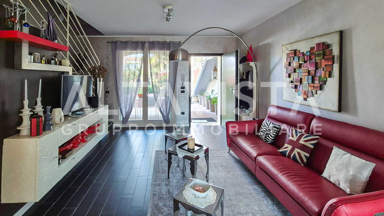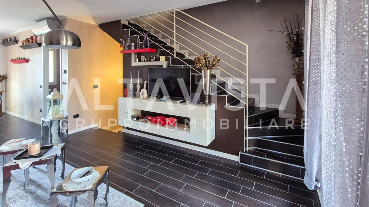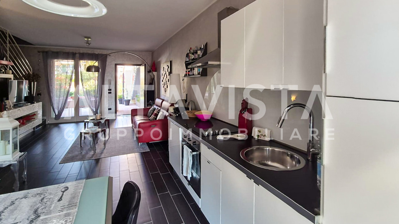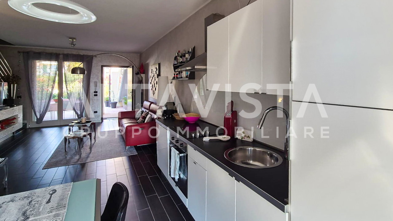 Inserita in un elegante contesto, la soluzione si sviluppa su 3 livelli, al piano terra la zona giorno con cucina a vista, un porticato che da sul giardino privato, bagno finestrato con doccia e un altro giardinetto sul retro.