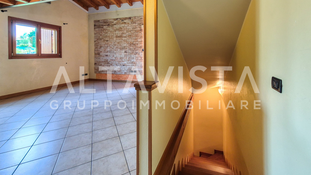 La proprietà si sviluppa su tre livelli per una superficie totale di 149 m² ed è circondata da verde, lontano dal traffico cittadino. Al piano terra troverete un luminoso soggiorno con suggestivo soppalco a vista che genera uno spazio aperto accogliente; la cucina abitabile offre accesso diretto al giardino privato, ideale per momenti all'aperto e cene sotto le stelle. Completano il pian terreno una camera matrimoniale con bagno di servizio dedicato.