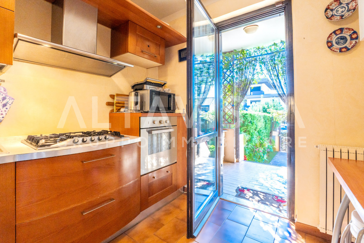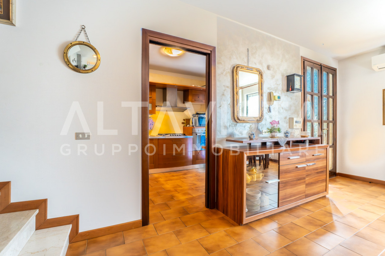 l’ingresso carraio e pedonale sono indipendenti. Il fronte della casa è arricchito da un grazioso giardinetto privato, qualche gradino conduce al piano principale, dove si apre un’ampia zona giorno con camino, accogliente e luminosa, ideale per momenti di relax in famiglia, la cucina è separata ed abitabile, con affaccio sul giardino.